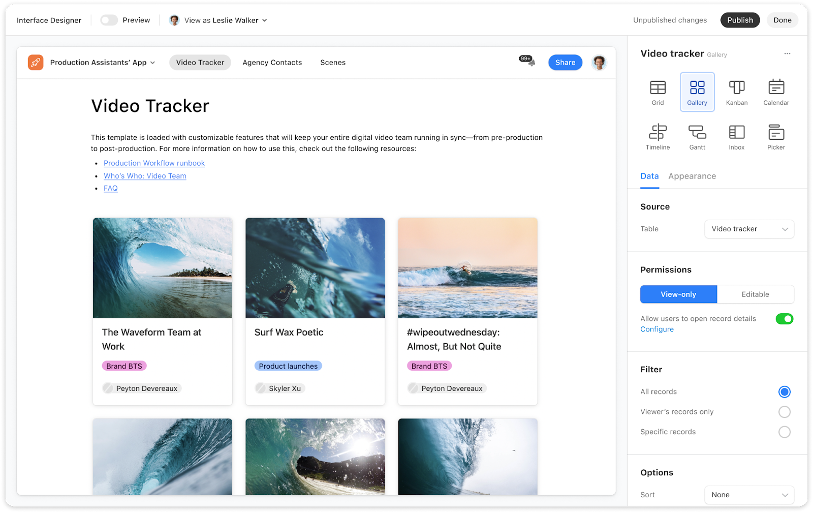 - Interface Designer: Transform your data into intuitive and interactive interfaces that can be quickly customized for each team member. Interface Designer is now generally available for all Airtable users with updated and more powerful features.