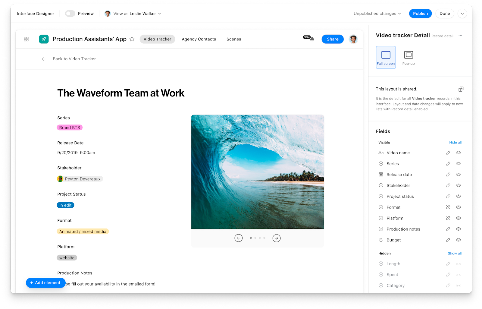 - When you want to share an expanded view into a particular record, our new full page detail experience provides you with the ability to fully customize what others see. So if you need to give marketing leadership a way to view and approve your brand assets, you can design a built out interface that shows them all the details in one place.