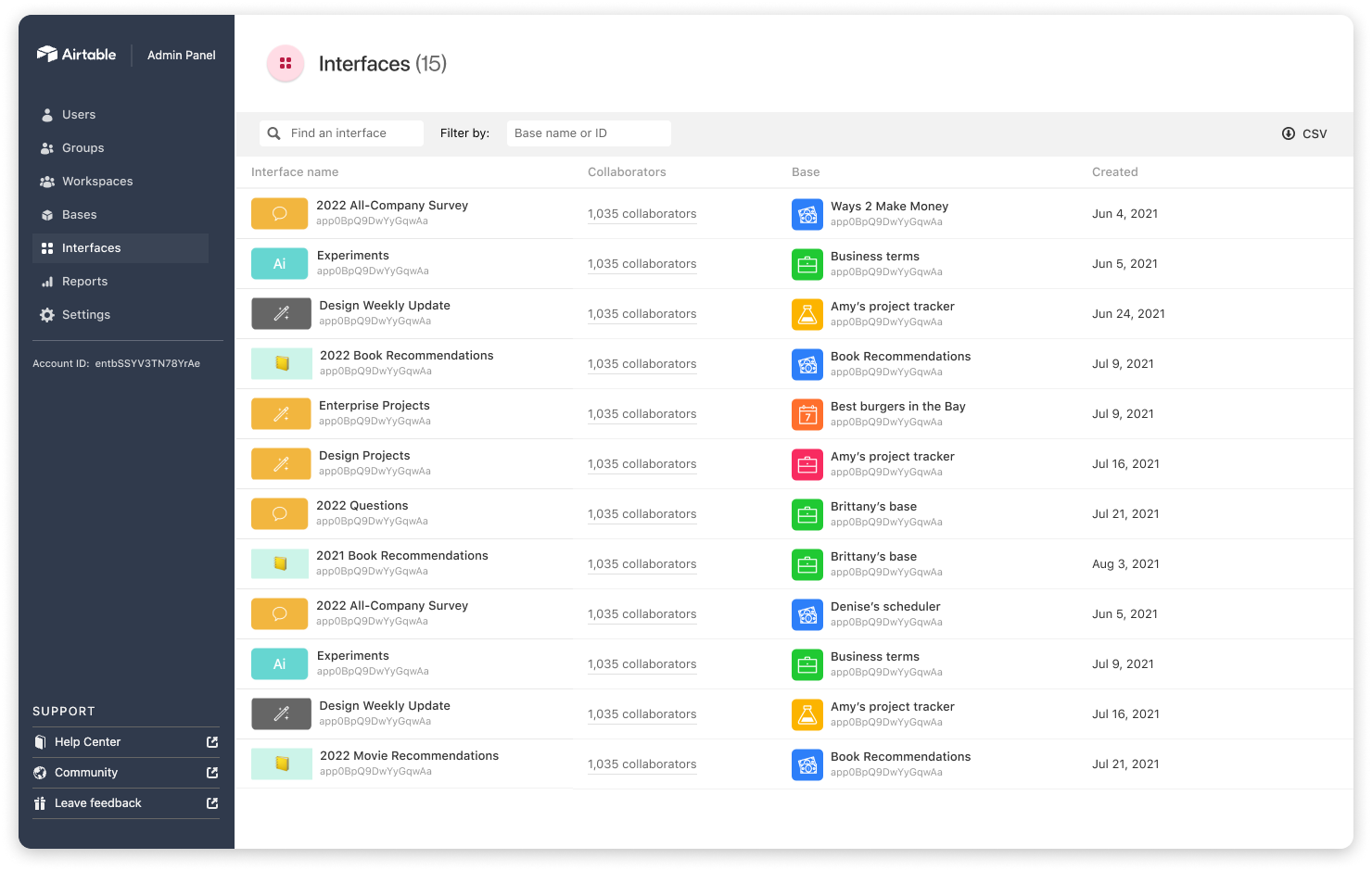 - As your organization grows, it’s important to track what’s created and shared to maintain data security. Now, Enterprise admins can manage interfaces straight from the admin panel—similar to the way they can manage workspaces and bases. Admins will not only be able to see who’s creating or using interfaces, but who has access.