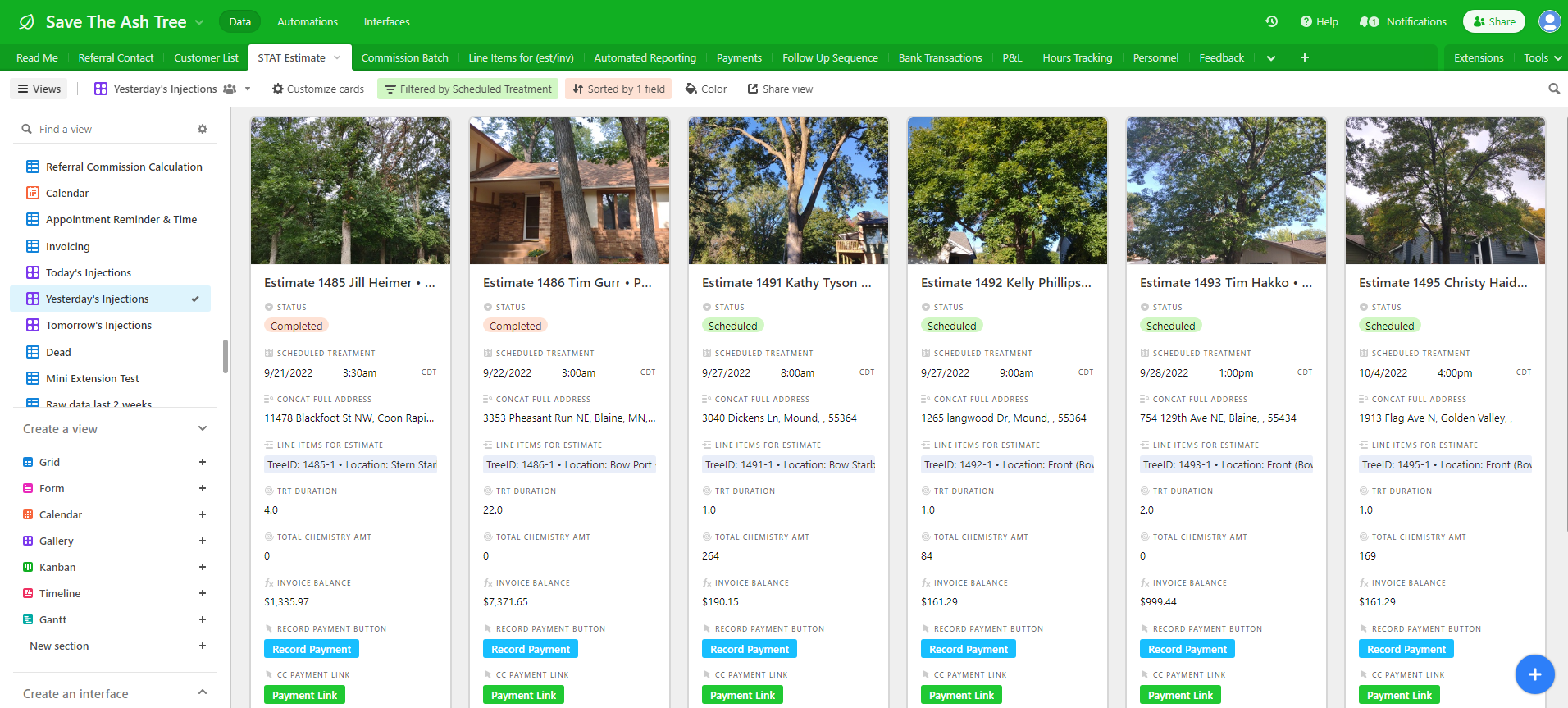 Using Airtable and an integration with Make (formerly Integromat), Anderson also automated the bidding process for new tree clients.