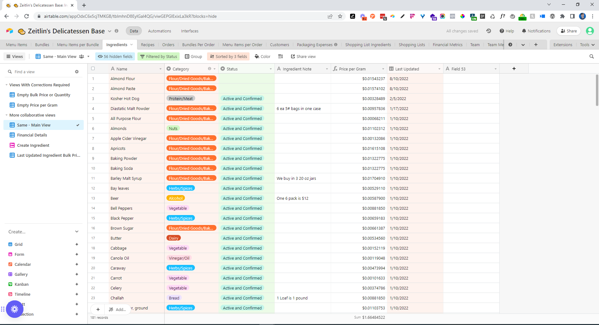 In the bigger picture, Airtable is helping Sam, Hal, and team project the profitability of all items sold and make monthly profitability estimates. As they gear up to run wholesale and catering operations along traditional restaurant-style retail, this type of accounting will be critical.