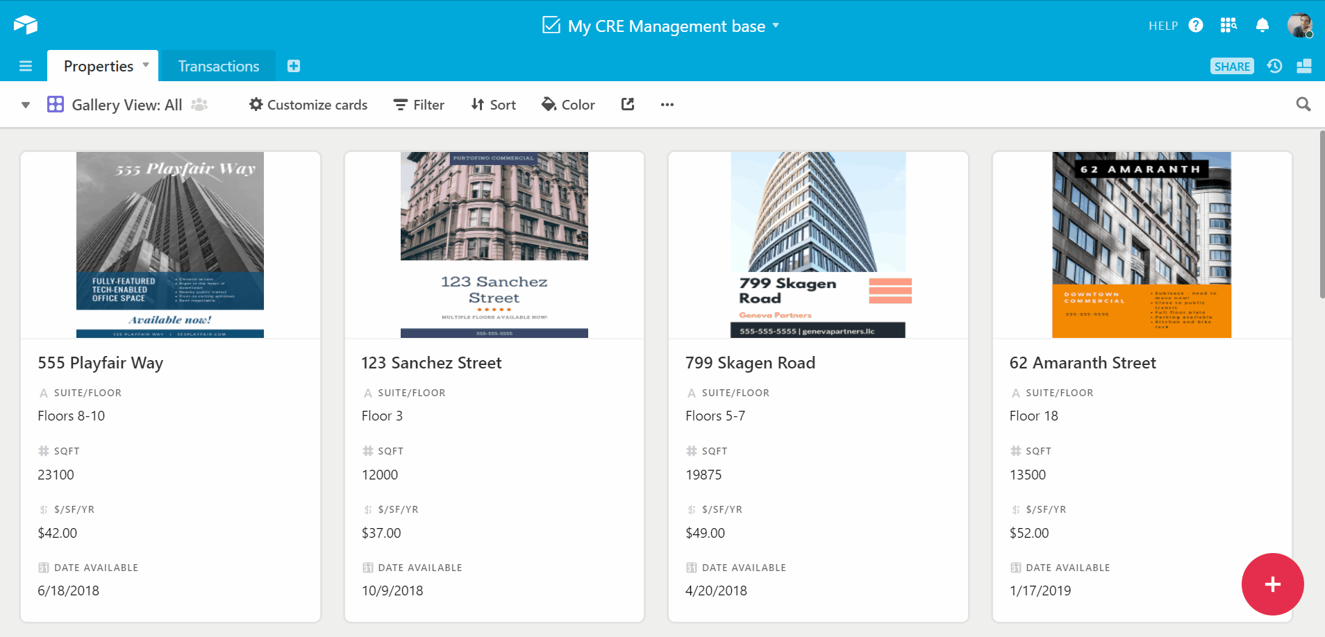 No matter how organized our tables are, it's challenging to keep track of multiple properties on the market, or of deals in various stages of their life cycle. Using views gives us the power to visualize the necessary details in different configurations, depending on your specific needs at a given point in time. In this case, let's take our existing Properties table and create a gallery view that we can use to share properties with our clients.