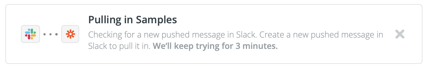 Before you do, make sure you see the “Pulling in Samples” message (pictured above) so you know that Zapier's ready to go.