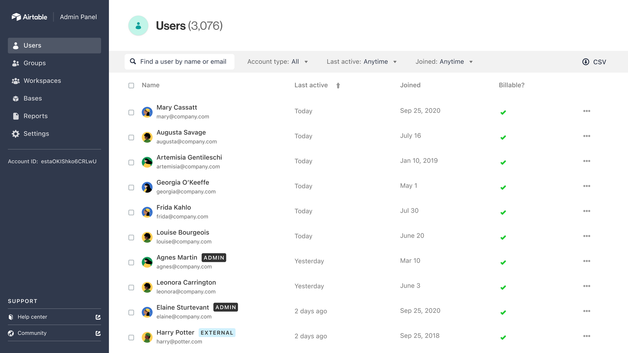 We’re also taking strides to ensure that as your company grows in their Airtable usage, your security does, too. That’s why we’ve redesigned our admin panel and added significant new security controls available today—like Audit Log APIs and workspace share restrictions. And next week we’re releasing new user group features which allow users to manage permissions for entire teams, not just individuals.