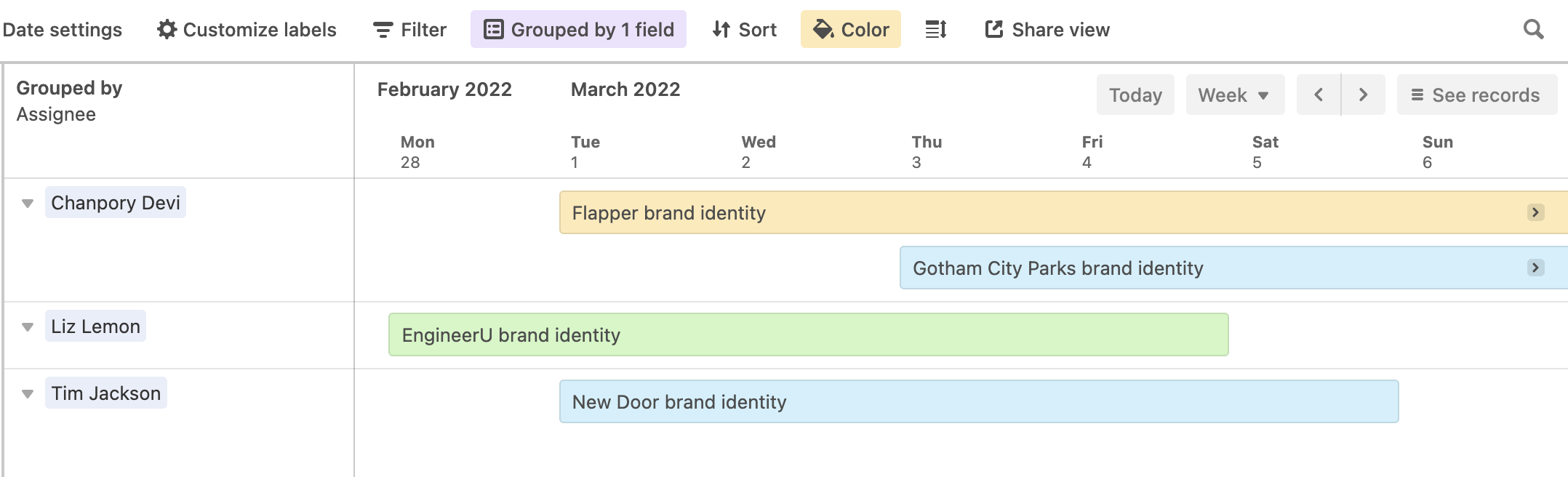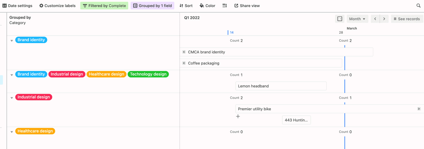 Learn more about grouping records in Timeline view