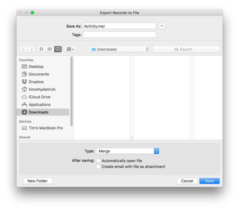 Export the Activity Table from FileMaker