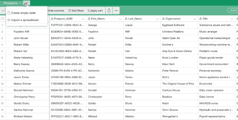 In Part 1 of this guide, you learned how to migrate data from FileMaker to Airtable. You migrated the Prospects table from the sample FileMaker database to Airtable, and then configured the new table with the best possible column types.